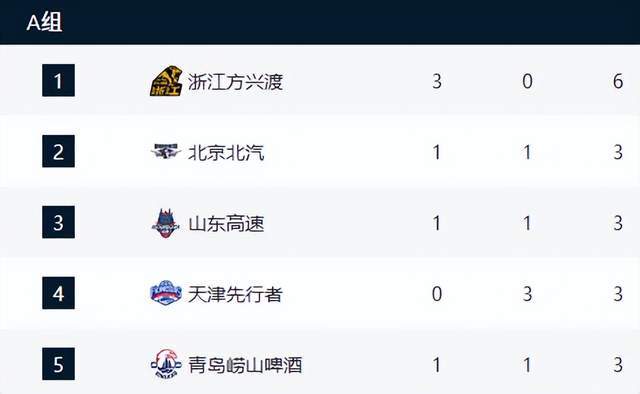 A组则是打2场比赛,下午15点,青岛对阵天津,晚上19:30,北京对阵山东,继续为小组前2名努力。